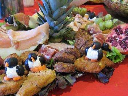 … gibt es auch was Gutes zu essen. In diesem Fall hatte sich Sr. Anna-Maria selber übertroffen, von vielen Helferinnen unterstützt. Und die unbestrittene Krönung waren die Pinguine aus Frischkäse, Oliven und Möhren. Ich war noch unterwegs, als sie entstanden, aber ich habe mir sagen lassen, die Käsebäuche seien von der Generalpriorin handgeformt worden.