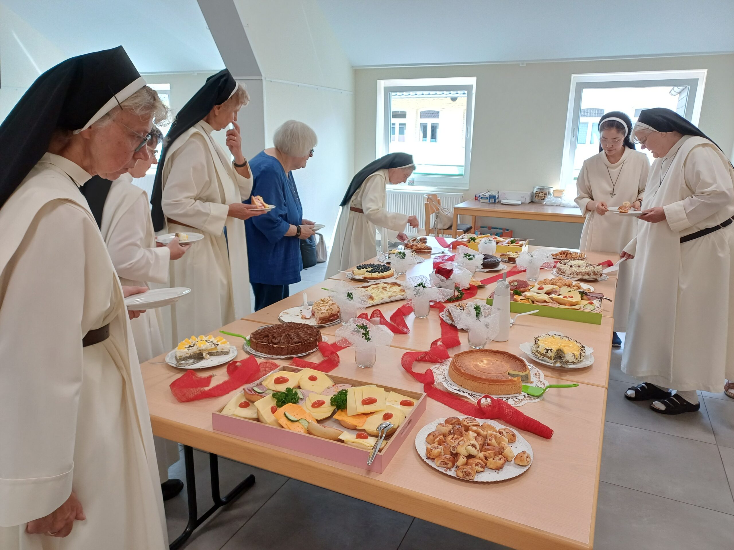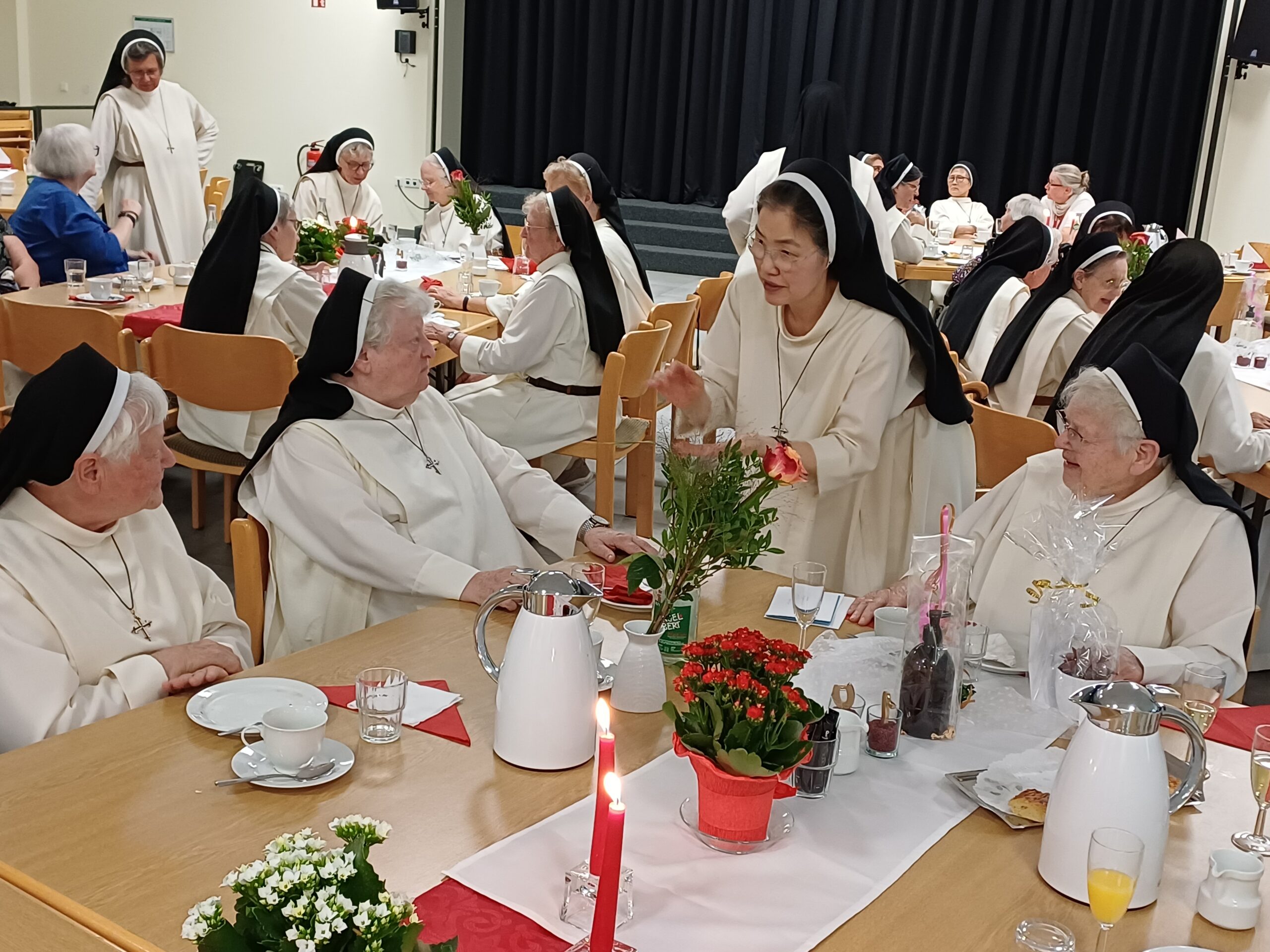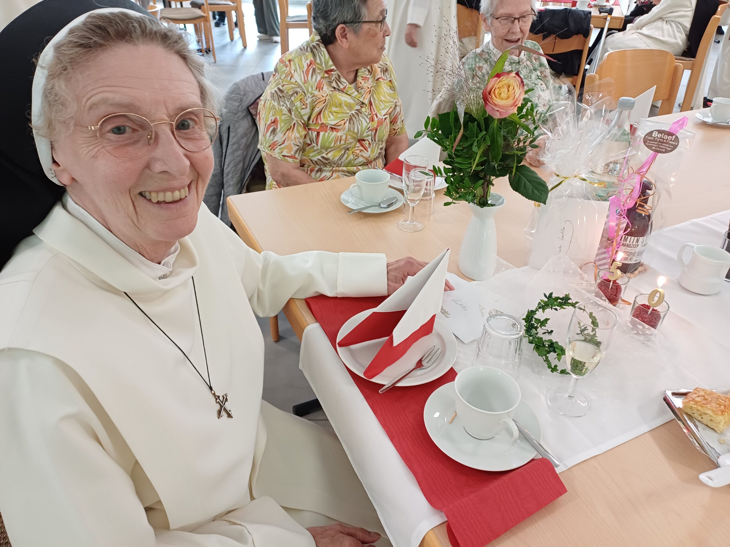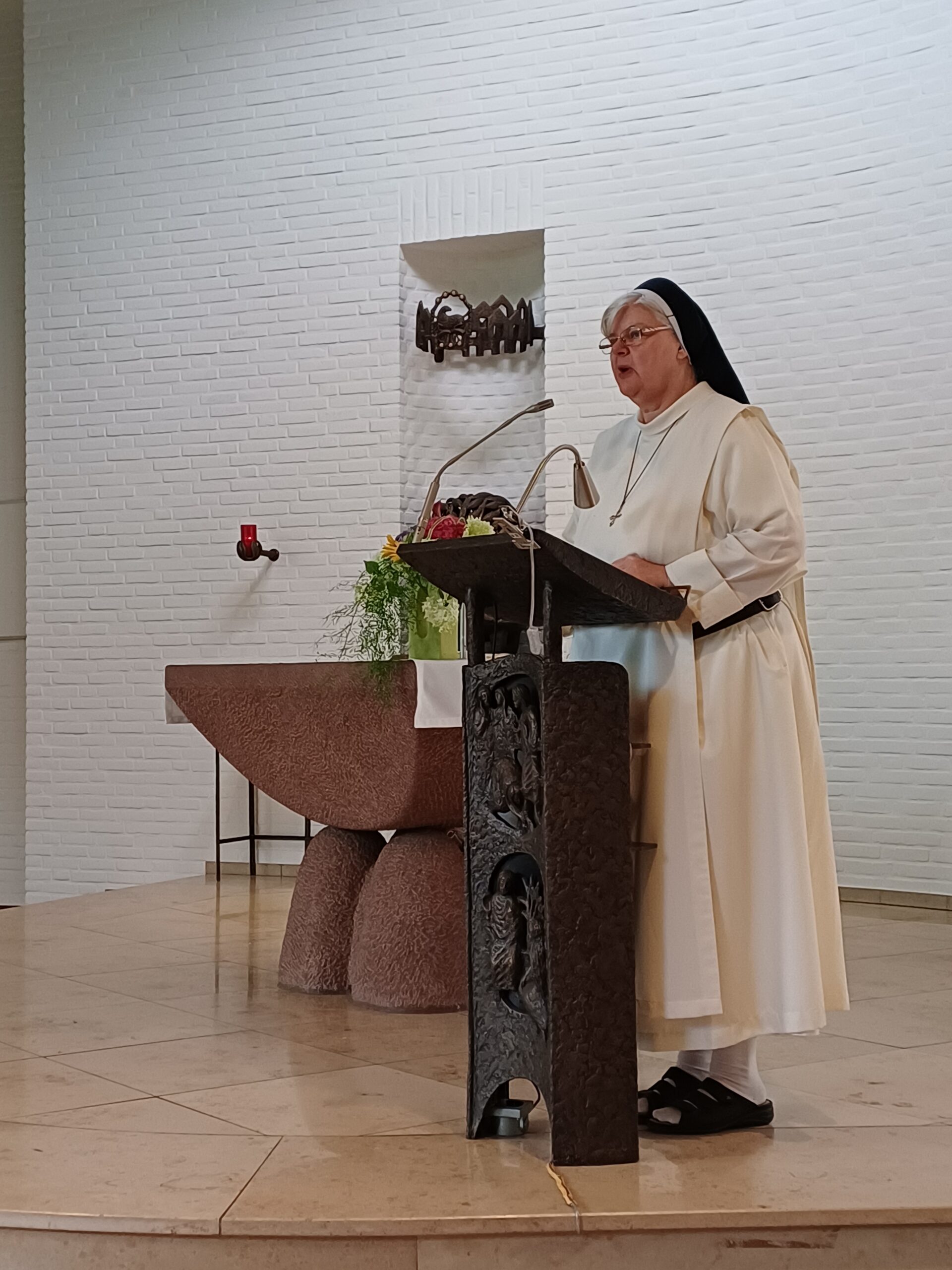 Einmal im Jahr feiern alle unsere Jubilarinnen gemeinsam. Diesmal war das am 2.8.2025 am Niederrhein, in der Kapelle und Aula unseres Kinderdorfes in Schwalmtal-Waldniel. Sr. Diana hatte Silberfest (25 Jahre in Bethanien), Sr. Heidemaria Rubin (40 Jahre), Sr. Laetitia Gold (50 Jahre), Sr. Wilma Diamant (60 Jahre) und Zuster Magda sage und schreibe Platin (70 Jahre)! Wir gratulieren und wünschen weiterhin Gottes Segen!